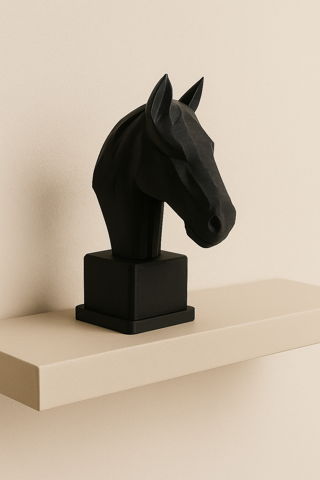 SEO: scultura cavallo 3D, busto cavallo nero, decorazione minimal, scultura moderna, 3DIX.